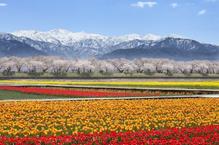 富山県あさひ舟川の「春の四重奏」はご存知でしょうか。4月上旬、残雪の朝日岳を背景に、チューリップ、菜の花、桜並木が奏でる春らんまんの四重奏風景は確かに見事なものですが、我が松本も、背景となる残雪の北アルプスの白、桜のピンク、松本城の黒、そして青空の4色が織りなす景観は、他では見られない早春の貴重な景色であり、松本の貴重な財産ですよね。  【管理人 堤】
